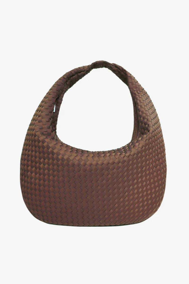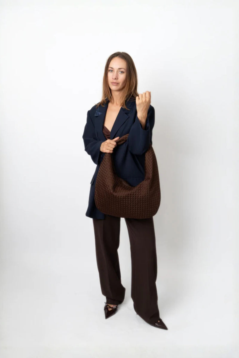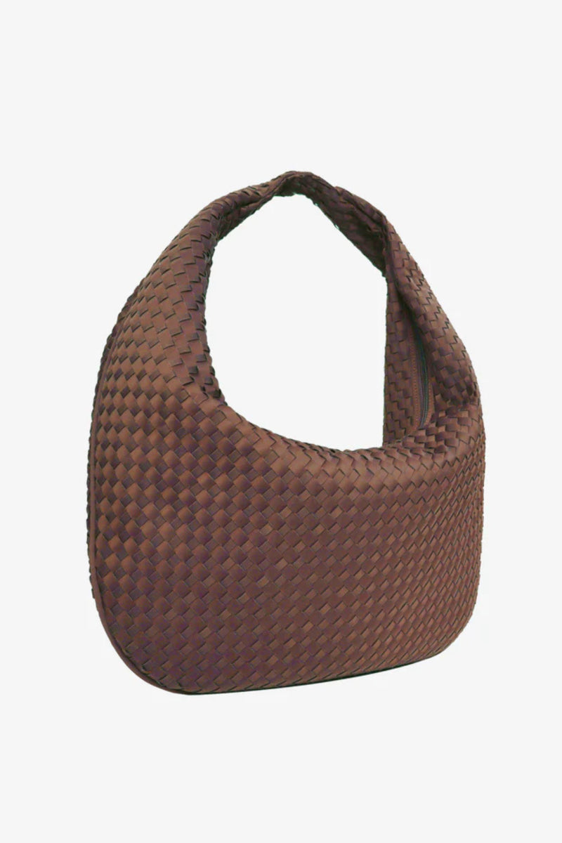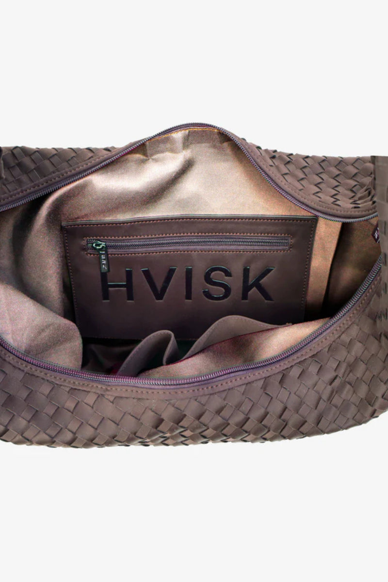 Handtas met één groot vak. De tas heeft één buitenvak met ritssluiting, twee open binnenvakken en één binnenvak met ritssluiting.