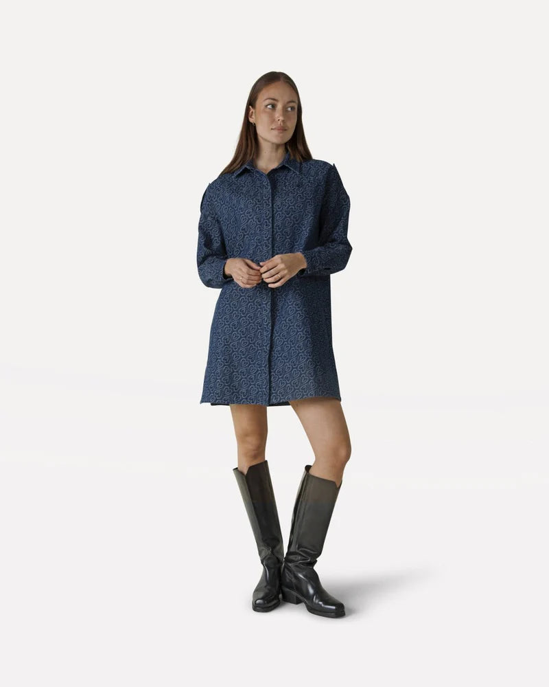 De Katia-jurk is cool en nonchalant. Met zijn korte lengte en verlaagde schouders straalt hij een ontspannen maar toch verfijnde energie uit. Borstzakken en een verborgen knoopsluiting zorgen voor een minimalistische maar scherpe look. Stylingtip: combineer met hoge laarzen of chunky sneakers