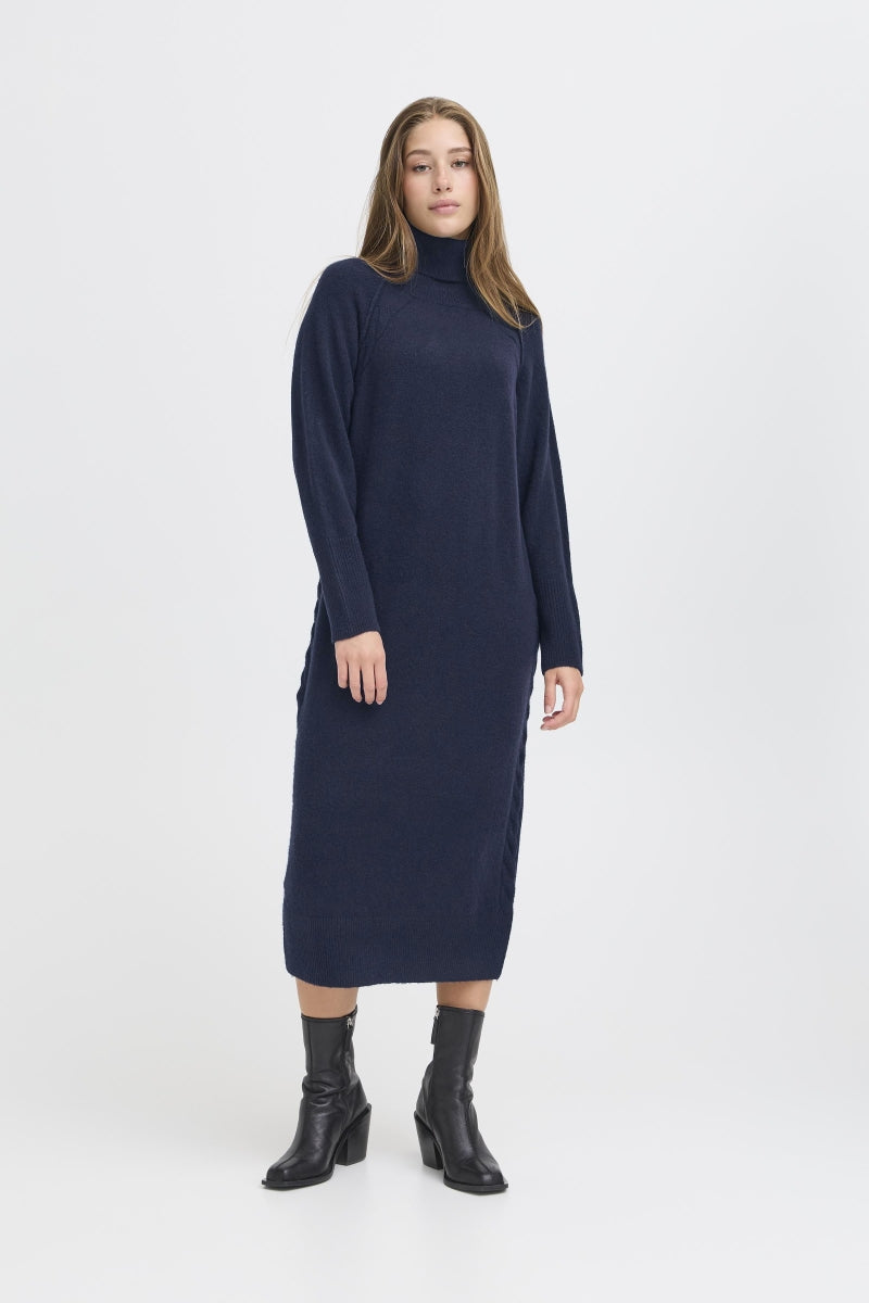 Coltrui-jurk met een ontspannen pasvorm en comfortabele feel. Voorzien van lange mouwen, midi-lengte, ribboord bij hals en mouwen, veelzijdig in gebruik.